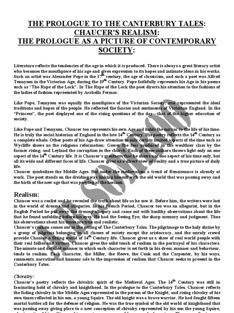 The Prologue To The Canterbury Tales Pdf The Canterbury Tales Chivalry